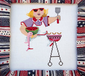 BBQ Queen has legs on her barbecue!  Next week I'll be stitching on the pink flamingo.