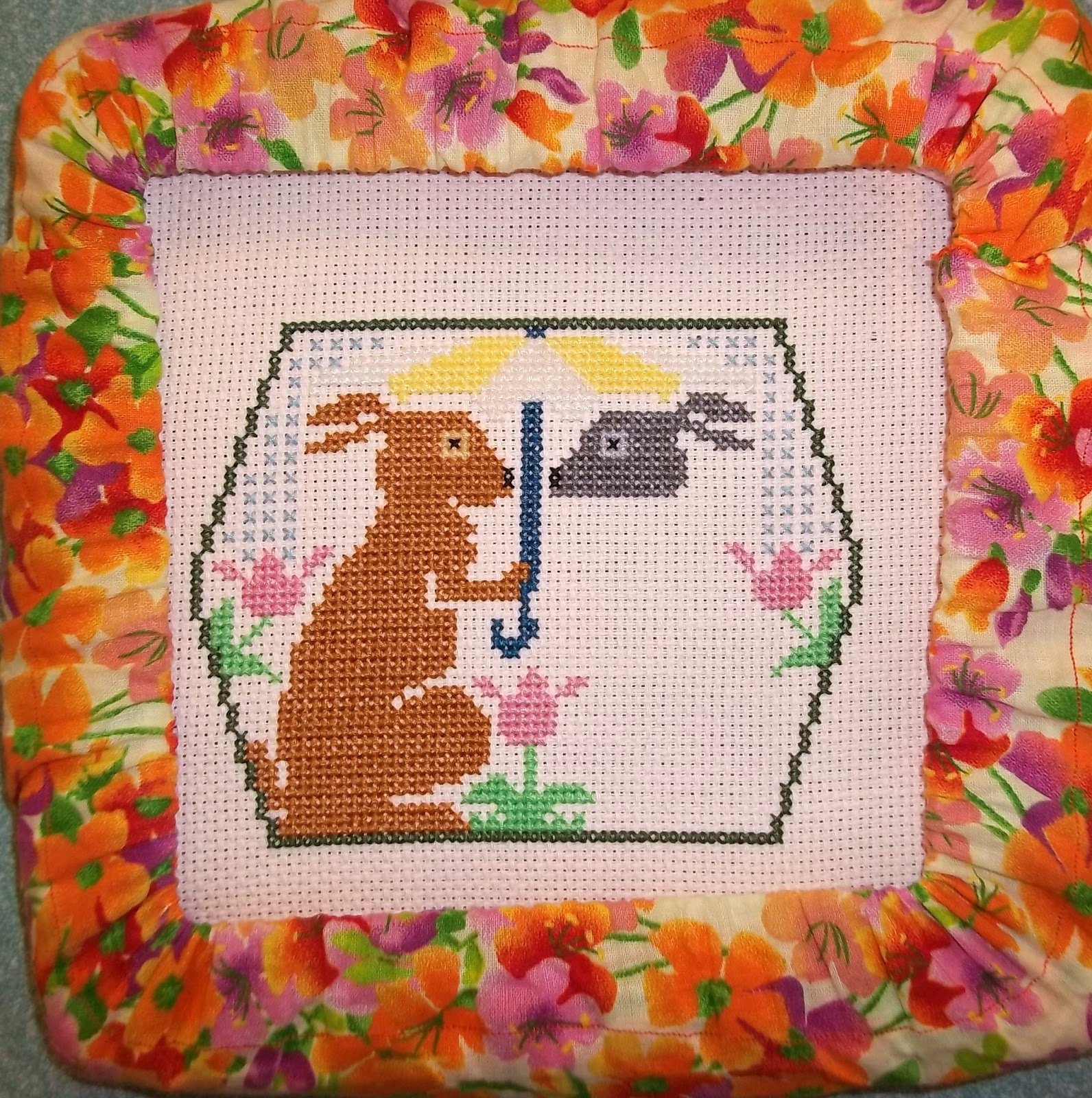 The big gray bunny is halfway there! I hope to finish him on Saturday and stitch "April" on the bottom and this will be added to my Finishes 2012 page!  Then I can start on "May" in my Saturday SAL with Linda and Rosemary.